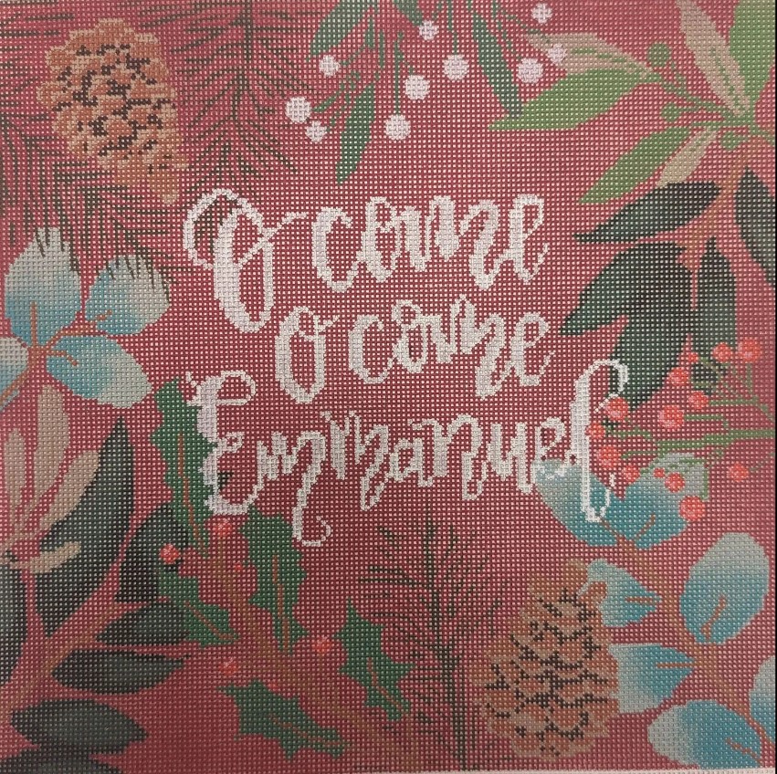 Laura Love Designs – Red Botanical Pillow – O Come O Come Emmanuel